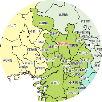 大阪府茨木市を中心に、高槻市、枚方市、寝屋川市、交野市、箕面市、吹田市、豊中市、摂津市、守口市、門真市、池田市、大阪市内、京都市、亀岡市、島本町、神戸市を営業範囲とさせて頂いております。 その他の地域でも対応が可能な場合がございますので、お気軽にご相談下さい。 |